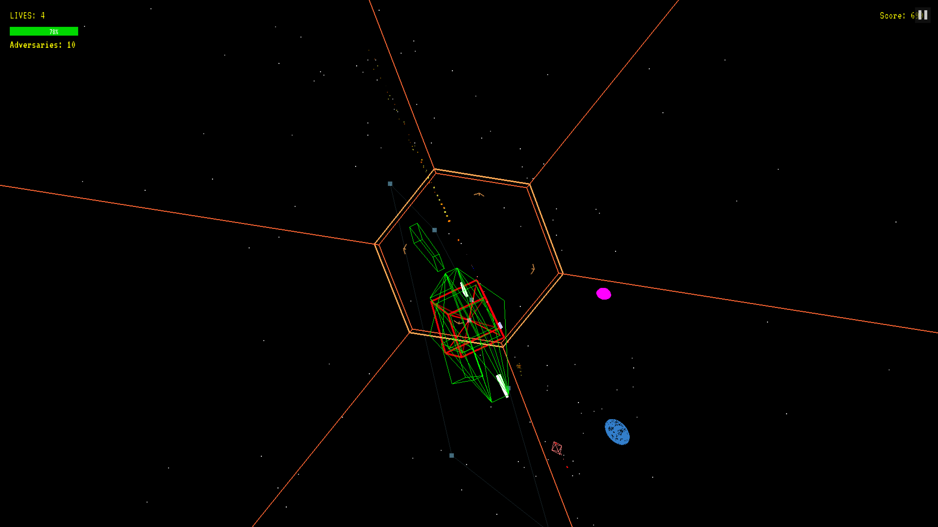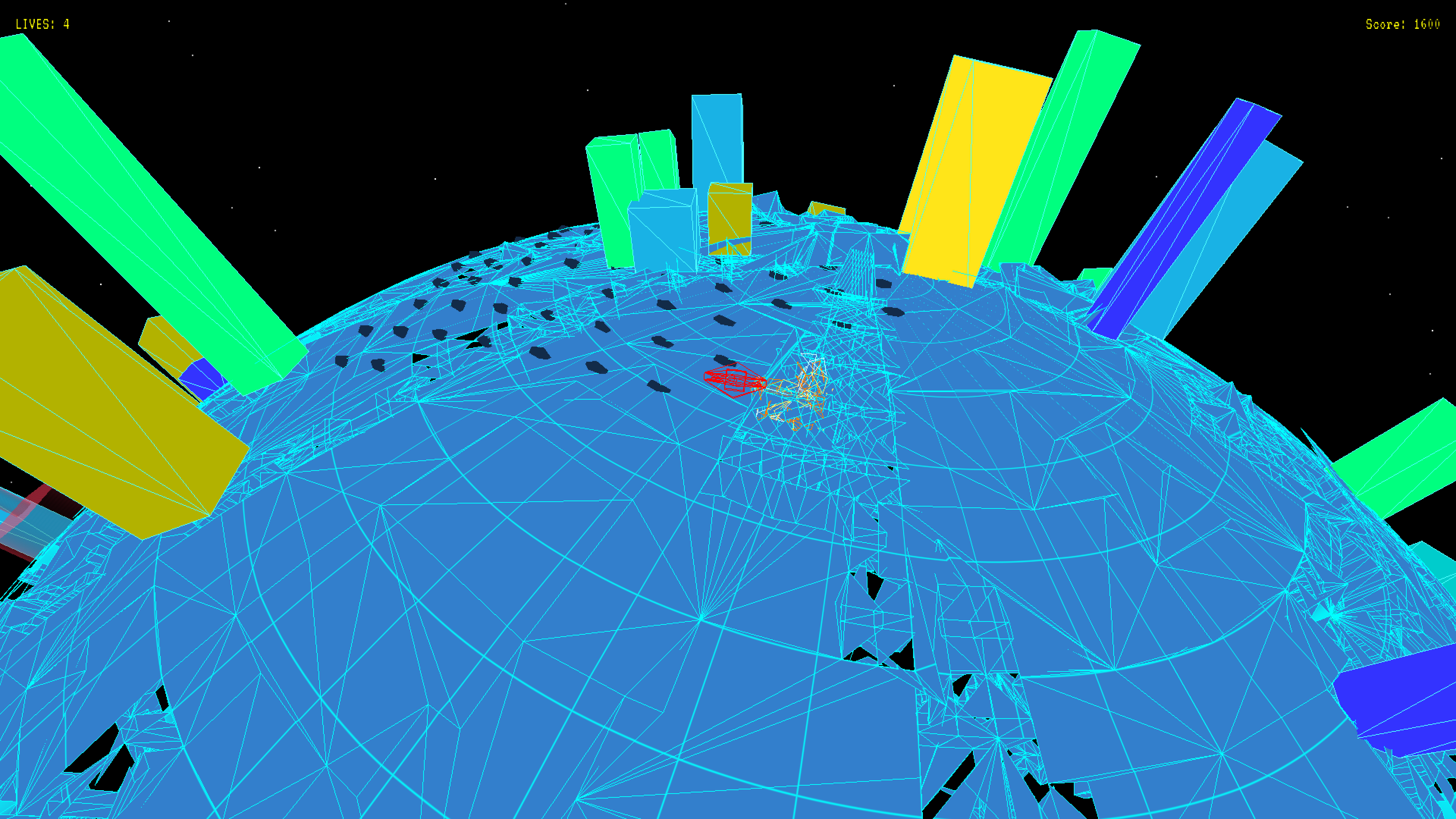 A vector wireframe shooter where classic arcade combat meets cosmic dread. Blast through evolving enemy formations around massive planetary structures, shift between top-down and orbital 3D perspectives, and piece together a haunting narrative through cryptic terminal logs left behind by its creator.