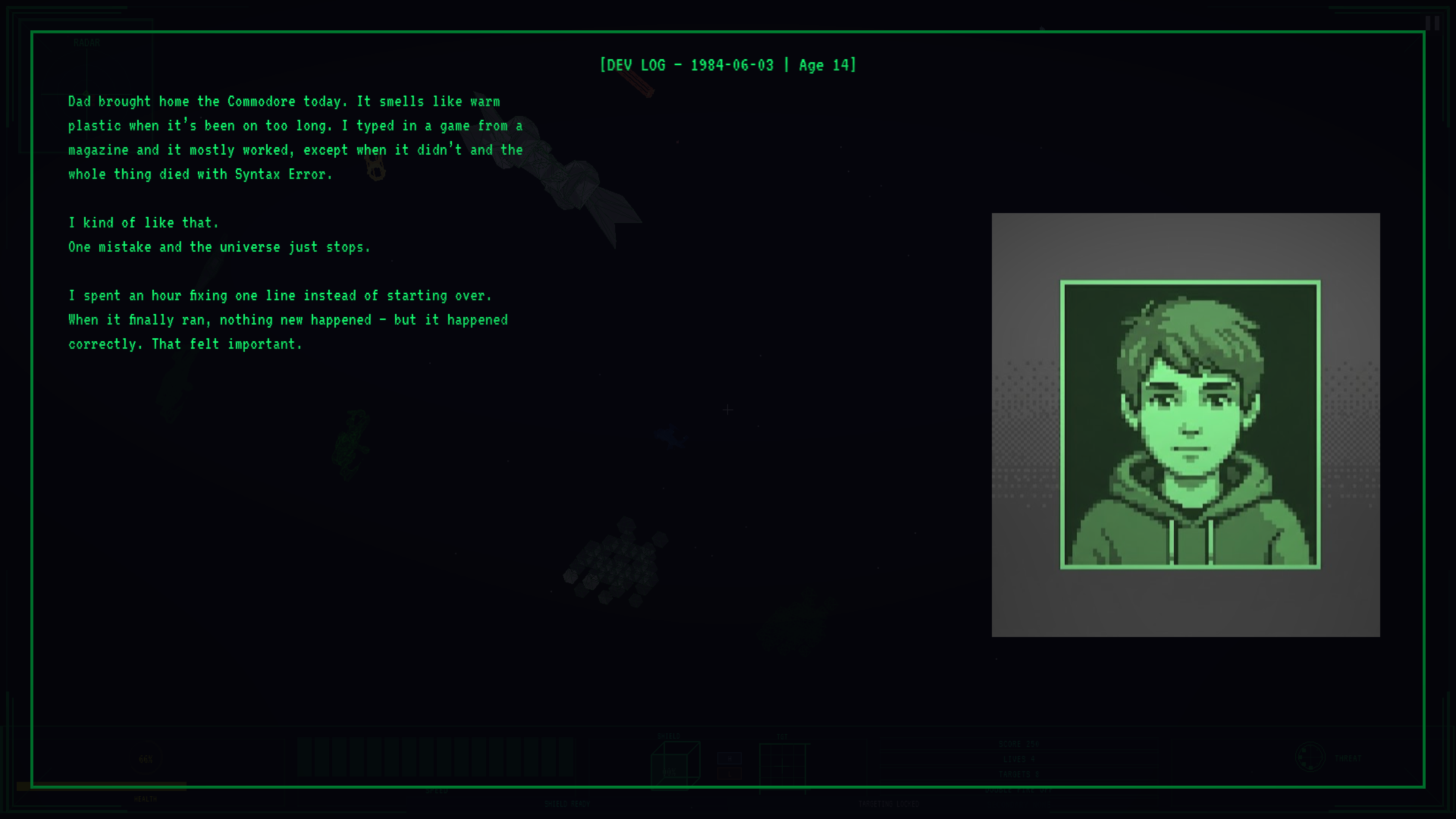 In 1986, a teenage developer finished a space shooter he couldn't fully explain. Forty years later, you're playing the warning he accidentally built.